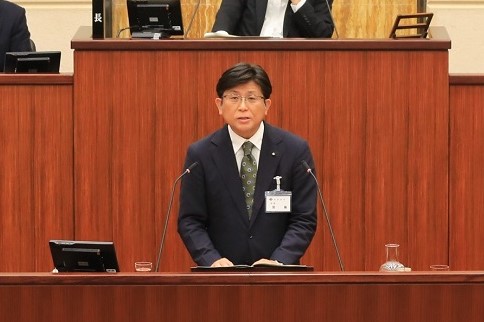 9月定例市議会で提案理由を述べる市長