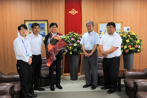 西九州食財「させぼ西海菊」の消費拡大とPRのため市役所を訪れた関係者の皆さんと市長