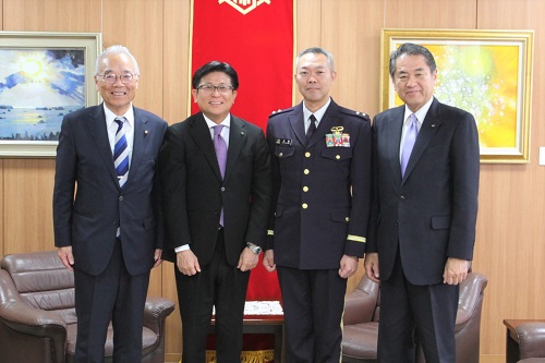 離任のあいさつのため市役所を訪れた陸上自衛隊水陸機動団の梨木団長と市長