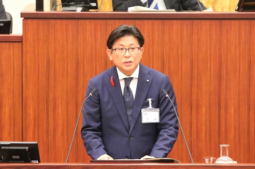 12月定例市議会で提案理由を述べる市長