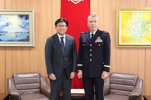 陸上自衛隊水陸機動団長に着任され、あいさつのため市役所を訪れた北島団長と市長