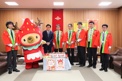 長崎県産いちご「ゆめのか」の消費拡大とPRのため市役所を訪れた佐世保いちご部会の皆さんと市長
