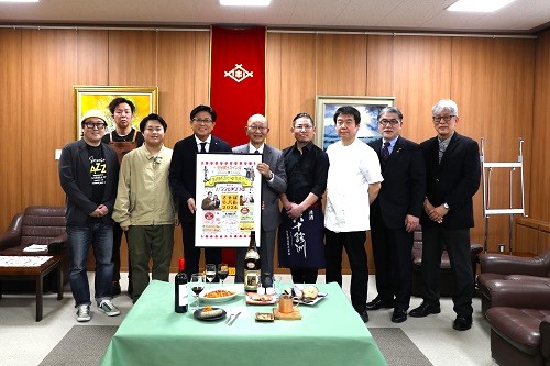 させぼeバル2024開催のあいさつに市役所を訪れた実行委員会および加盟店の皆さんと市長