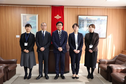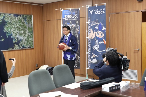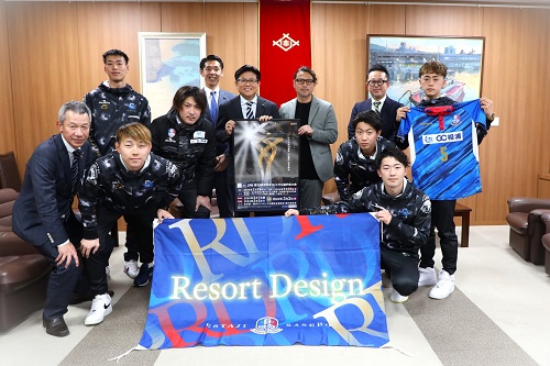 JFA第29回全日本フットサル選手権大会への出場報告に市役所を訪れたエスタジ佐世保の皆さんと市長