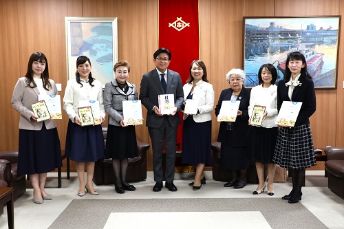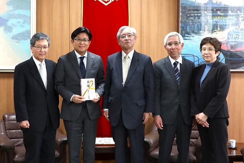 図書の寄贈のため市役所を訪れた聖和女子学院同窓会(聖苑会)の皆さんと市長