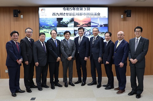 西九州させぼ広域都市圏協議会で12市町の首長の皆さんと記念撮影をする市長