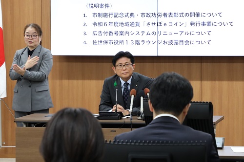 能登半島地震に係る被災地へ派遣する職員に激励の言葉を述べる市長