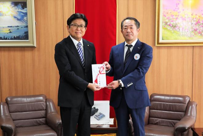 ドローン贈呈のため市役所を訪れた株式会社九電工宇久島事業開発支社長と市長