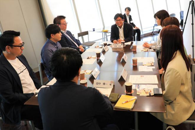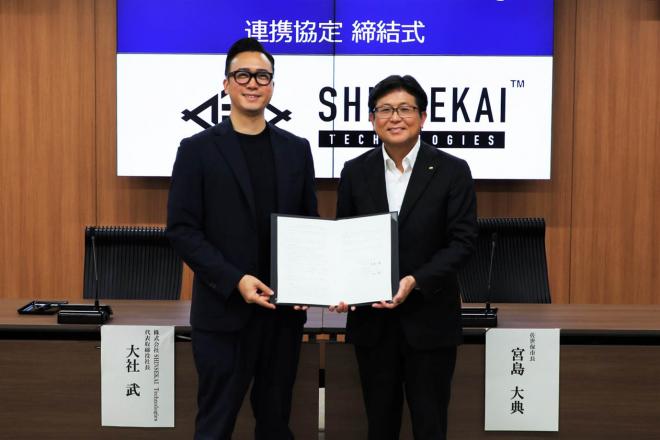 連携協定締結式のため市役所を訪れた株式会社SHINSEKAI Technologiesの大社代表取締役社長と市長