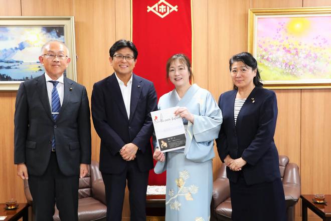 Beauty Japan日本大会出場報告のため市役所を訪れた福田さんと市長