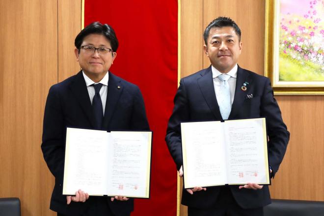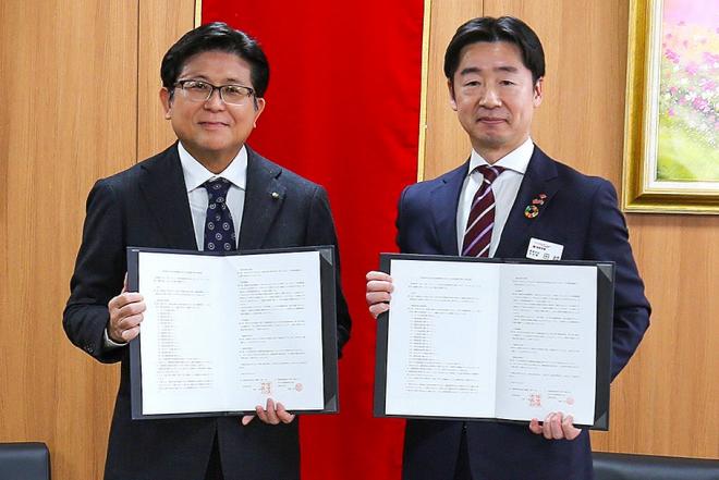 包括連携協定締結式のため市役所を訪れたあいおいニッセイ同和損害保険株式会社萩原執行役員と市長