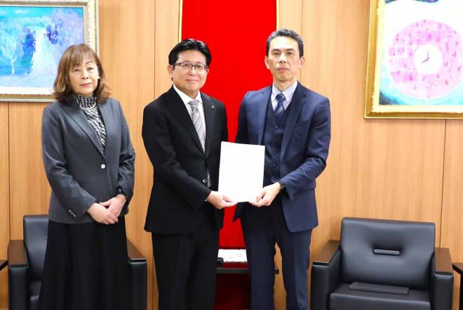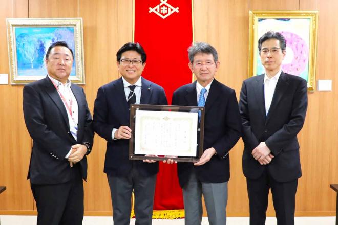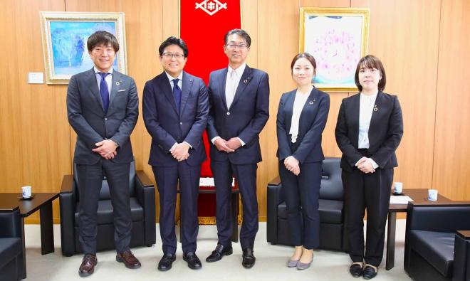 企業版ふるさと納税の寄付のため市役所を訪れた株式会社ディーソルの皆さんと市長