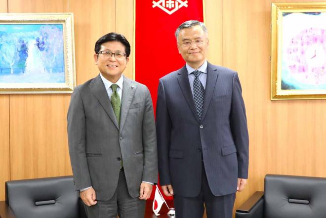 第12代目の駐長崎総領事に着任されたことのあいさつのため市役所を訪れた中華人民共和国駐長崎総領事の陳泳総領事と市長