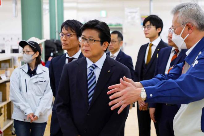誘致企業である双葉産業株式会社の工場を見学する市長