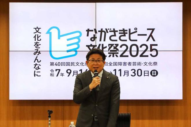 ながさきピース文化祭佐世保市実行委員会第4回総会であいさつする市長