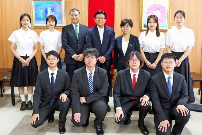 佐世保工業高等専門学校と学術交流を行うことの報告に市役所を訪れた、佐世保市の友好都市である中国・厦門市の厦門理工学院の生徒と市長
