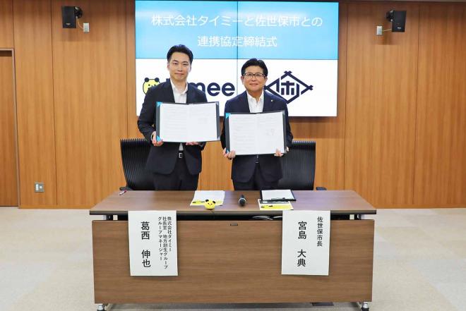 佐世保市と株式会社タイミーとの連携協定締結式のため市役所を訪れた葛西社長室地方創生グループグループマネージャーと市長
