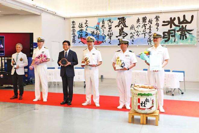 クルーズ客船「飛鳥Ⅲ」が佐世保港に初寄港したことを記念して開催された、初寄港セレモニーに出席する市長