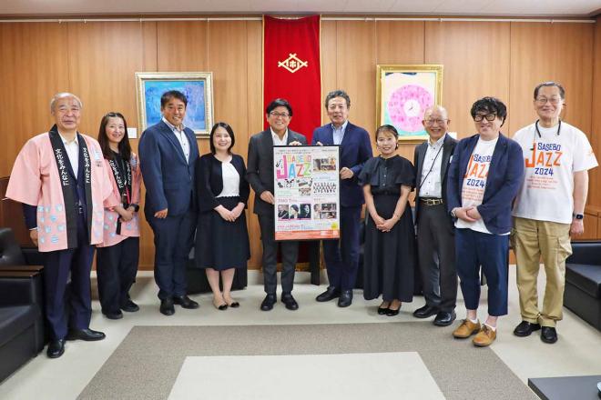 「させぼJAZZ2025」の開催報告のため市役所を訪れた実行委員会の皆さんと市長
