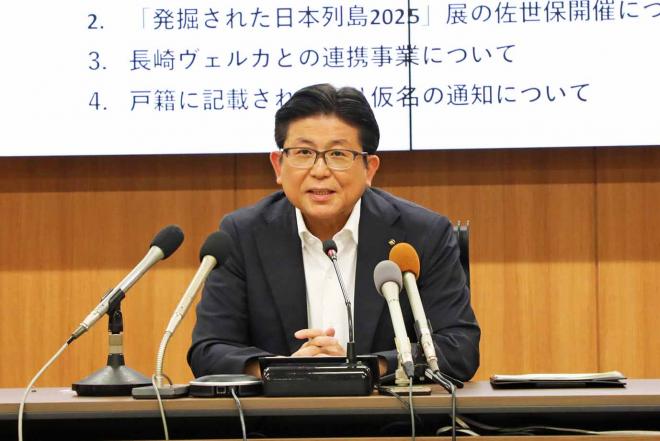 西海国立公園×自衛隊周年記念連携企画「7・7・7御朱印プロジェクト」のお披露目会に出席する市長