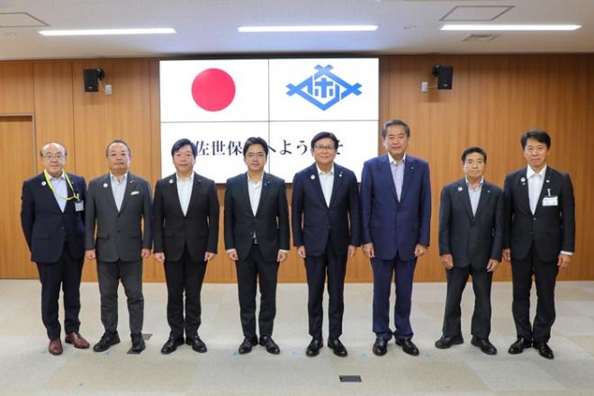 前畑弾薬庫移転・返還に係る日米合同委員会合意の説明のため市役所を訪れた金子防衛大臣政務官と市長