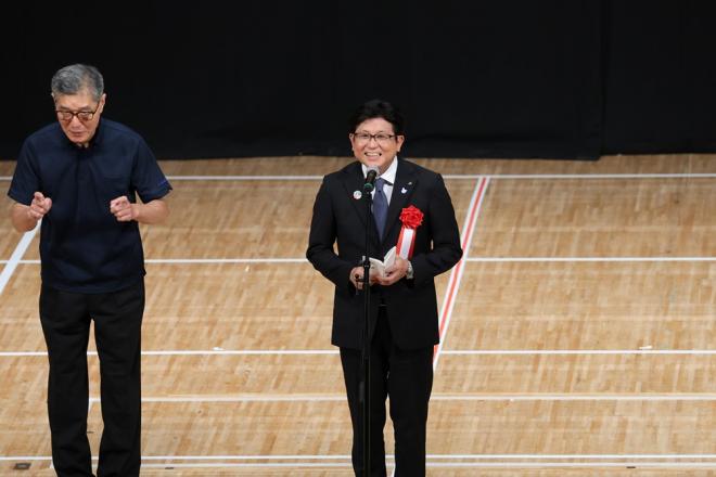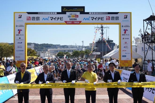 マイナビ ツール・ド・九州2025 佐世保クリテリウムのスタートセレモニーに出席する市長