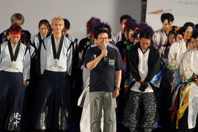 第27回YOSAKOIさせぼ祭りであいさつする市長