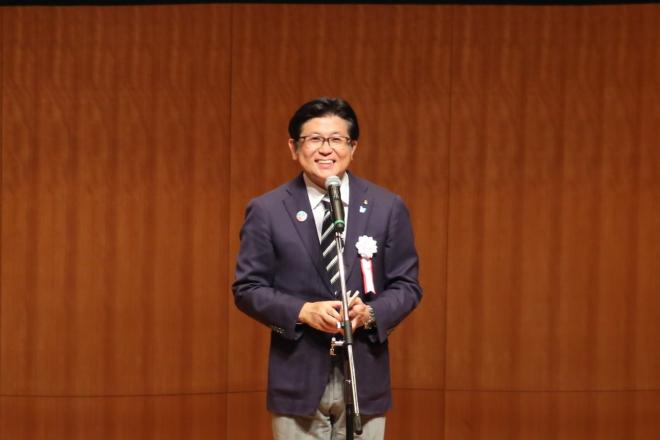 ながさきピース文化祭「俳句の祭典」であいさつする市長