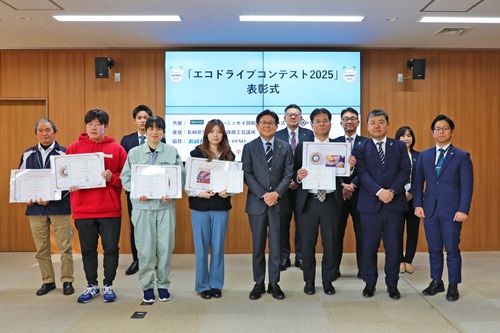 エコドライブコンテスト2025の表彰者と記念撮影をする市長