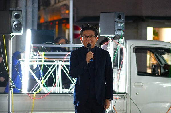 (おそらく)日本一早いマルシェイベントNEO朝市に出席しあいさつをする市長