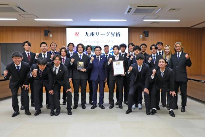全国大会の出場報告のため市役所を訪れたClub Atletico CELESTEの皆さんと市長