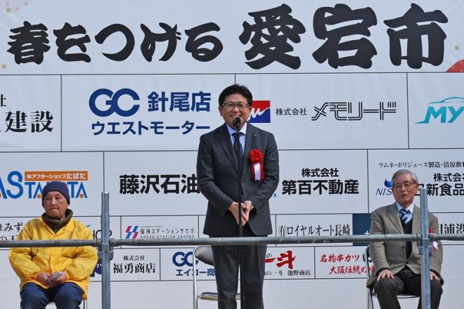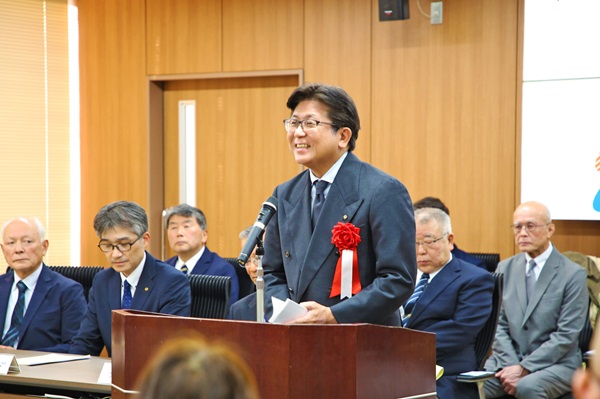 令和7年度(公財)佐世保市スポーツ協会のスポーツ表彰式であいさつする市長