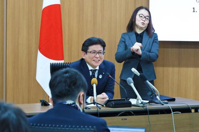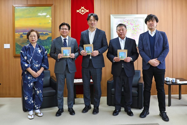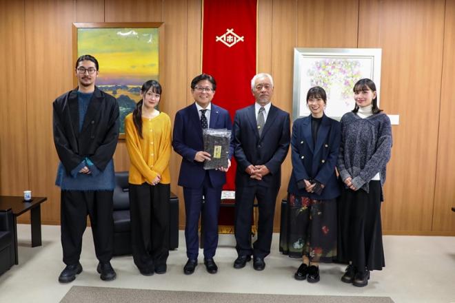 縦型ショートドラマ「Gift」およびショートフィルム「Present」の完成に伴い市役所を訪れた一般社団法人宇久町観光協会と関係者の皆さんと市長