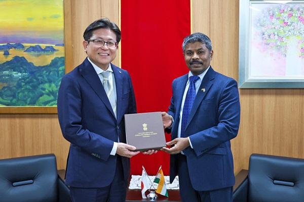 総領事館開設のあいさつに市役所を訪れた在福岡インド総領事館のラムクマール・C総領事と市長