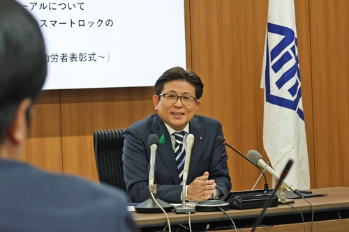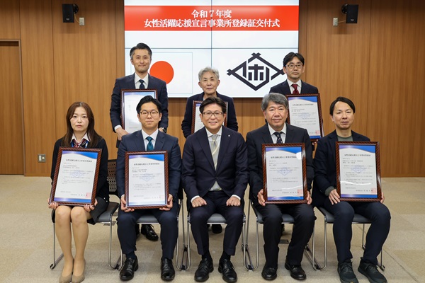 令和7年度佐世保市女性活躍応援宣言事業所登録証の交付式のため市役所を訪れた関係者の皆さんと市長