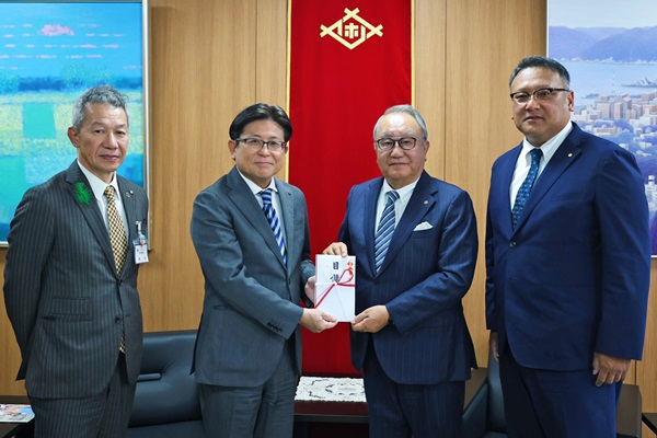 令和7年度冬巡業大相撲佐世保場所売り上げ金の寄付のため市役所を訪れた実行委員会の皆さんと市長
