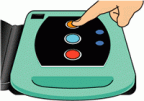 AEDの電源を入れると、必要な操作が全て音声ガイダンスによって案内されます。