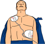 の4つのうち、いずれかの状態になったことを示すのですが、このうちAEDによる電気ショックは心室細動と脈の触れない心室性頻拍に有効な治療手段です。電気ショックが有効な理由は、心室細動を起こした心臓(心室)に一瞬大電流を通じさせることにより、心臓(心室)のすべての筋肉をいったん収縮(興奮)させ、その動きとリズムを合わせて元の拍動を取り戻させるためです。