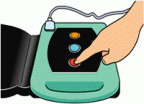4.AEDが自動的に傷病者の心電図を解析する(解析ボタンを押すことが必要な機種もある)ので、除細動の指示が出たら除細動のボタンを押す