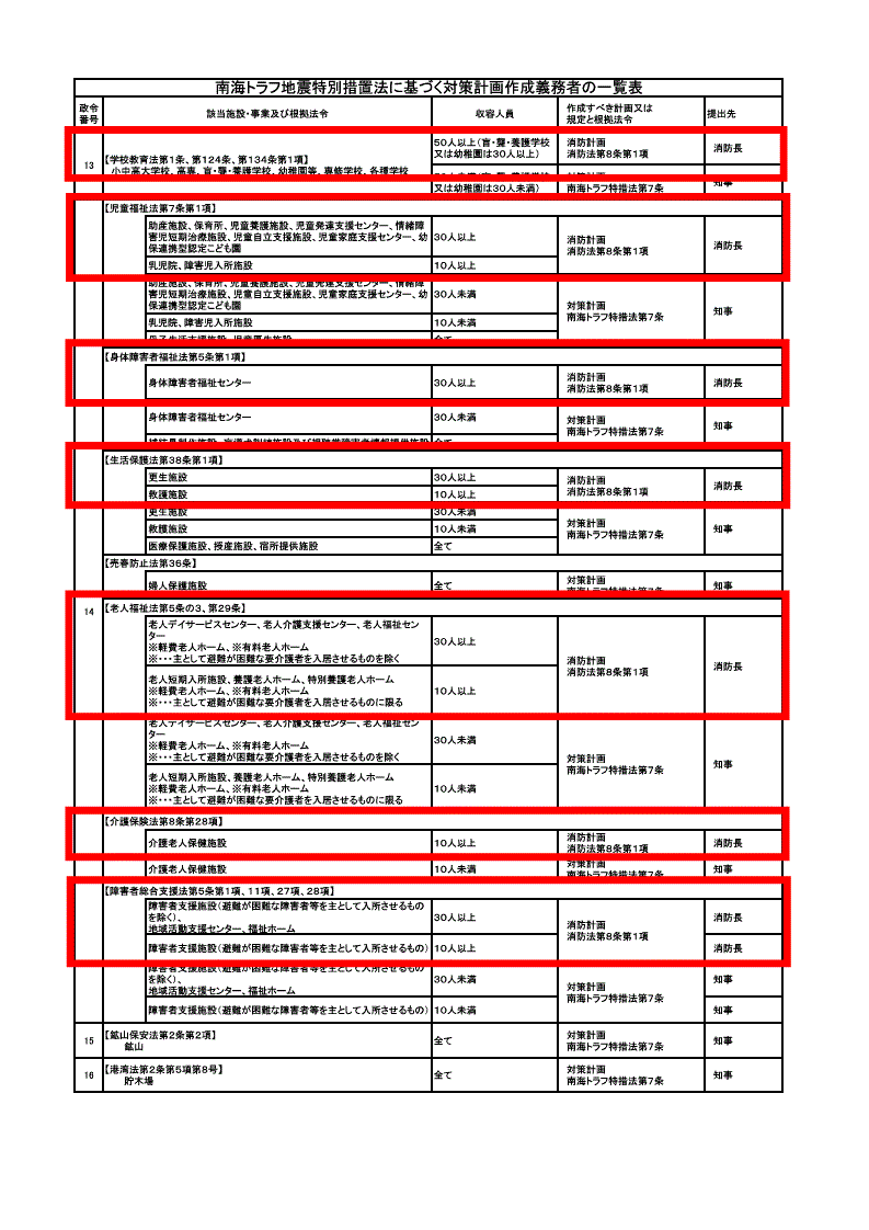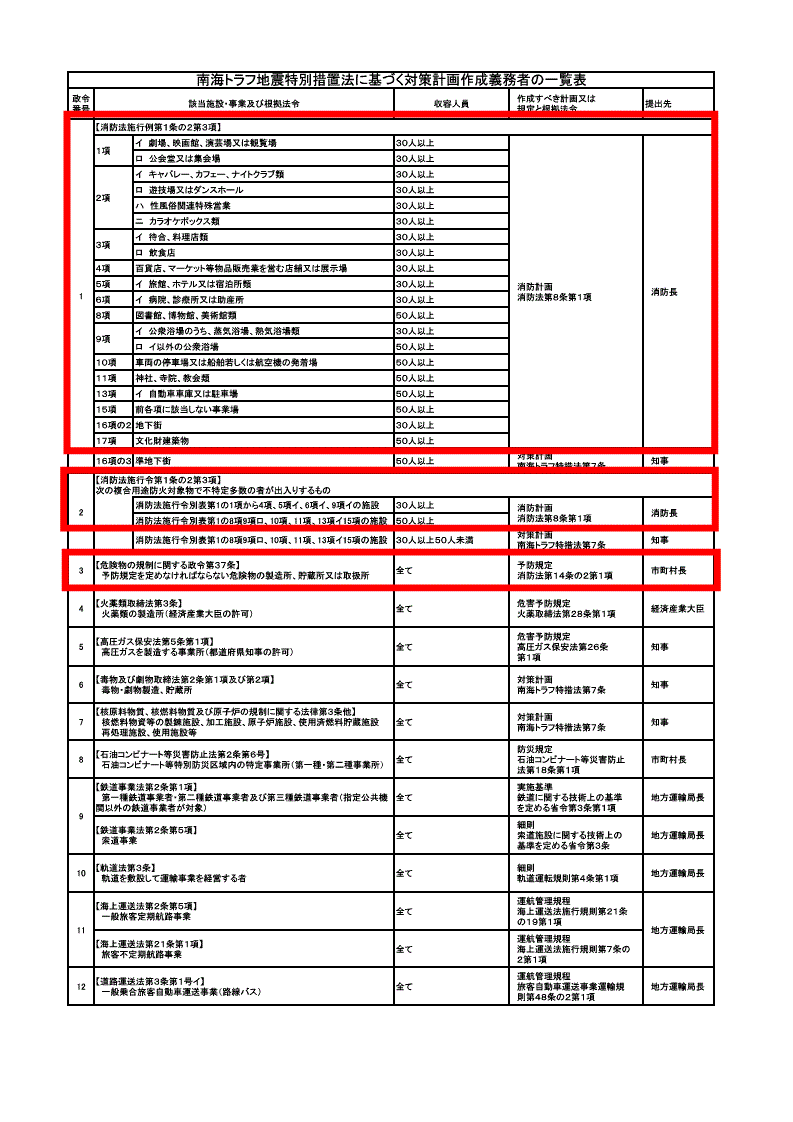 - 南海トラフ地震に係る消防計画等の変更等について