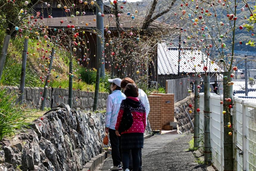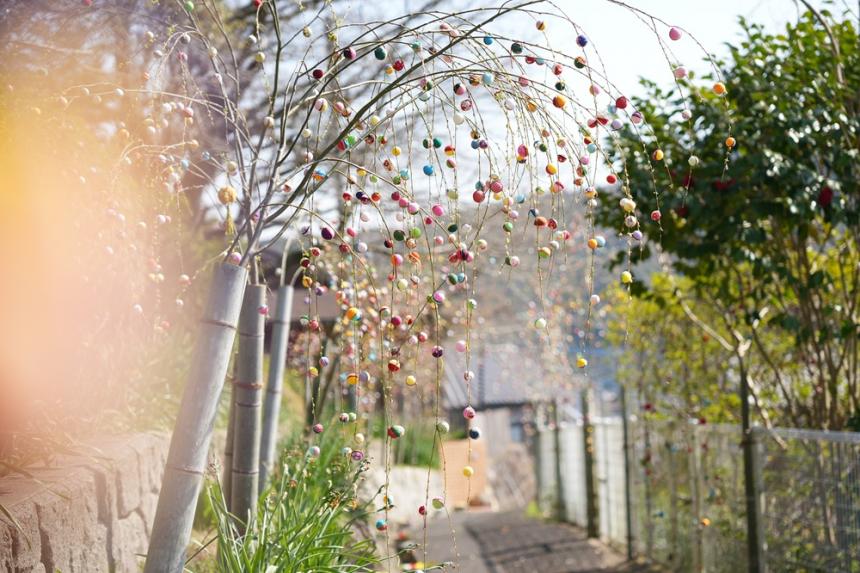 商店街には繭玉飾りが設置され、春らしい雰囲気を感じることができます。繭玉まつりは3月29日まで開催されています。江迎町を訪れた際は、商店街を散策しながら楽しんでみてください。