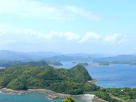 The view of Kujukushima from Ishidake was used for the film “Last Samurai” because of its beautiful landscape. There you can enjoy 360-degree view and that of the port of Sasebo. |