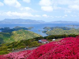 久留米つつじ、平戸つつじ10万本が咲き誇るつつじの名所として有名で、標高234mから望む北九十九島は絶景です。