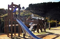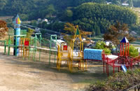 ビジターセンター横に遊具広場があり、各種木製遊具と延長100mのローラーすべり台があります。