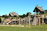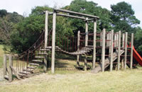 アスレチック性に富んだ木製の大型遊具があります。