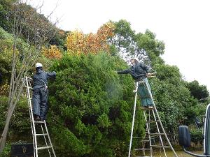 佐世保市造園建設業協同組合の皆様に中央公園の樹木剪定を行っていただきました。