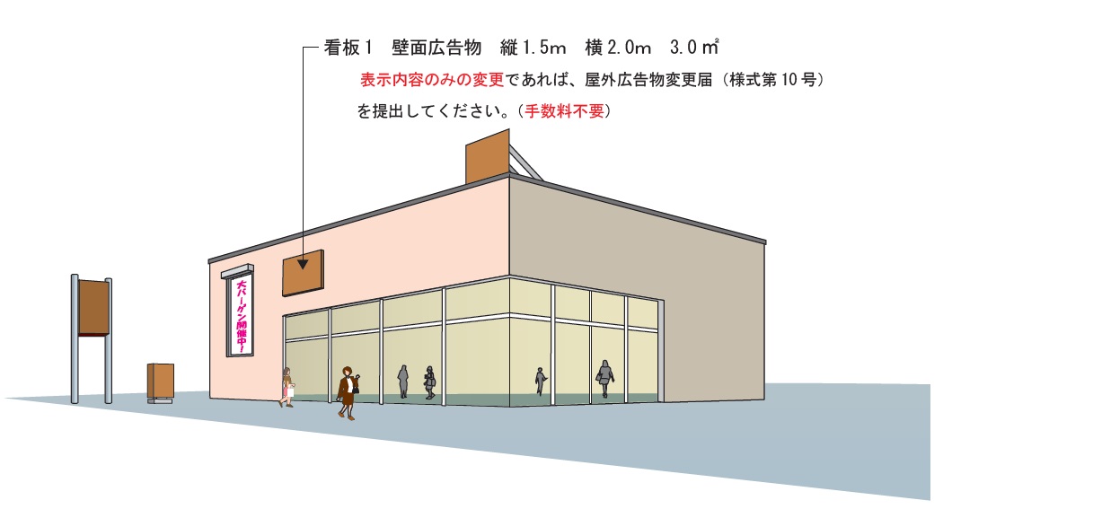 下図の看板1に示す通り、同一の板面で表示内容のみを変更する場合としております。