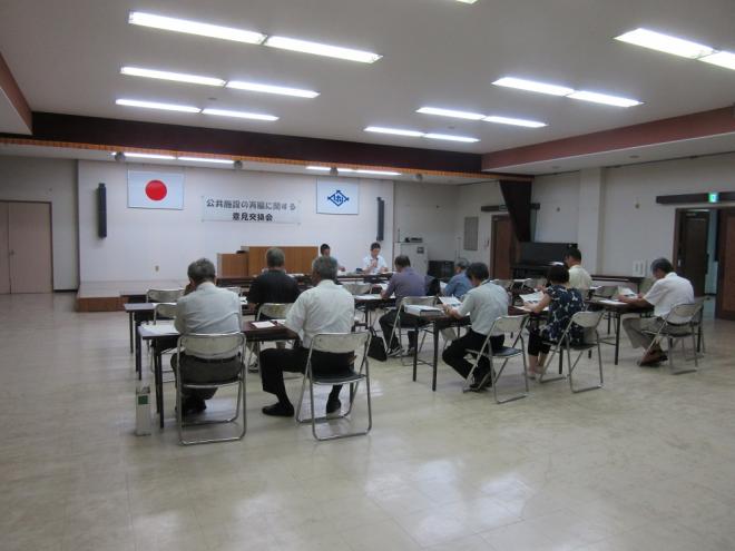 意見交換会では、はじめに、老朽化問題をはじめとした佐世保市の公共施設の現状と、人口減少や少子高齢化など佐世保市を取り巻く様々な諸問題について、ご説明をいたしました。その後、各地域にある公共施設を中心に、今後の佐世保市の公共施設の方向性について、市からのたたき台をお示しし、これらにつきまして、参加者の皆さまとの意見交換を行いました。